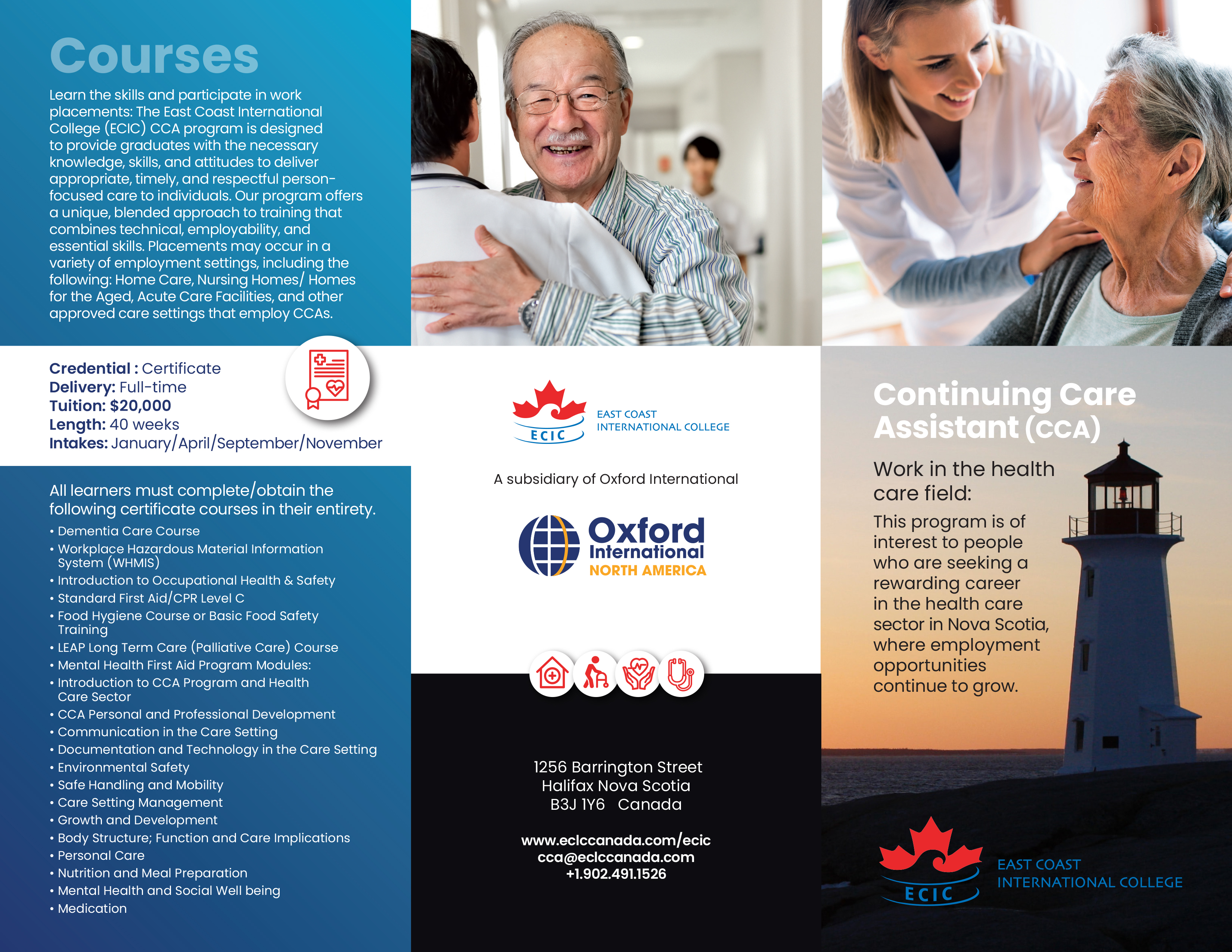 작년에 CCA 컬리지 과정으로 노바스코샤 주정부로부터 인가를 받고 새롭게 신설된 CCA 요양보호사 컬리지 프로그램입니다.